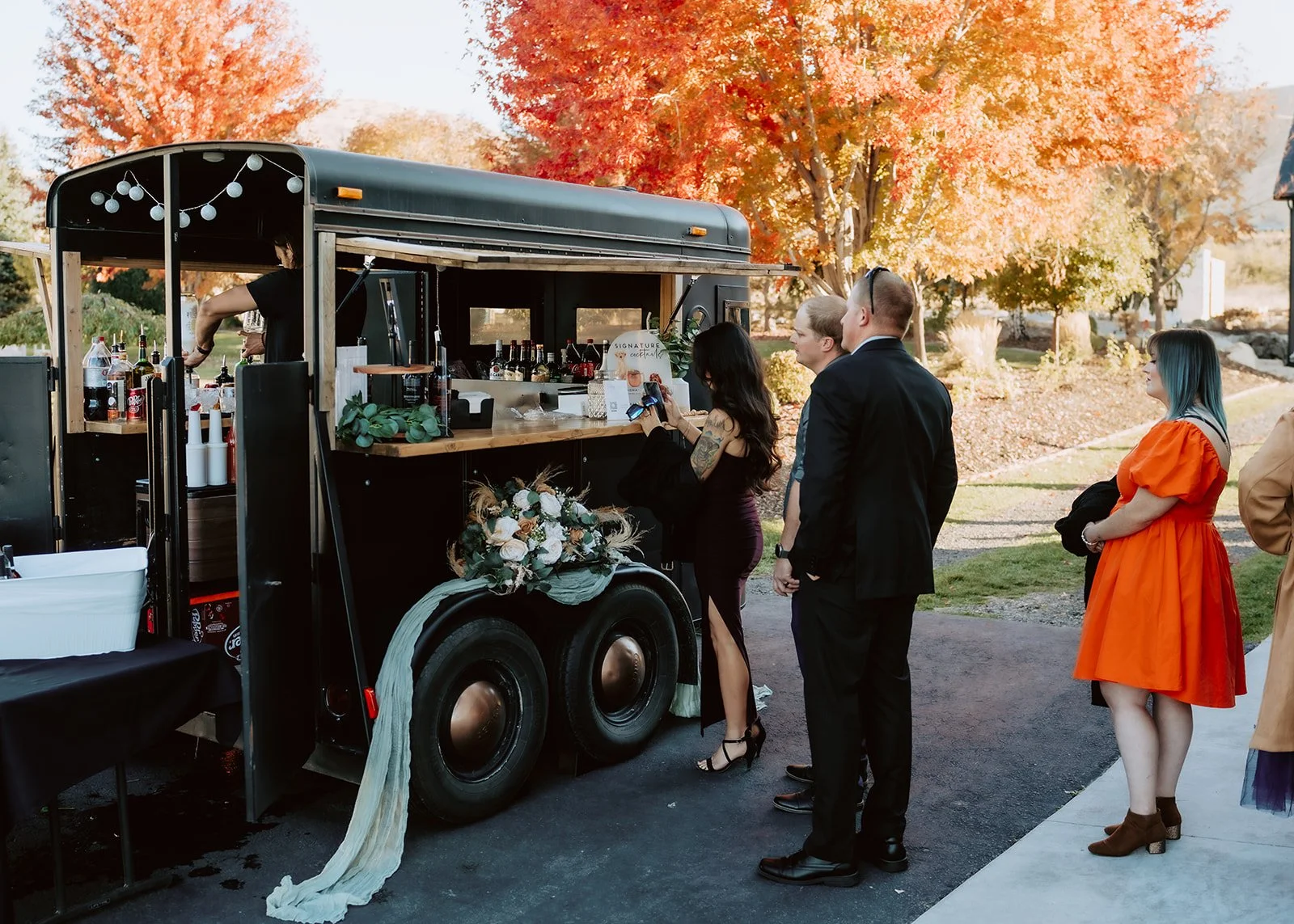 OUR SIGNATURE VINTAGE HORSE TRAILER BAR IS A TRUE STATEMENT PIECE — DESIGNED TO BE BOTH FUNCTIONAL AND UNFORGETTABLE. WITH ITS TIMELESS CHARM AND THOUGHTFULLY CURATED SETUP, THIS BAR BECOMES THE FOAL POINT OF YOUR CELEBRATION WHILE DELIVERING A SEAMLESS, FULL-SERVICE EXPERIENCE FROM THE FIRST POUR TO THE LAST.
